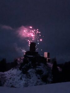 Silvester mit Blick auf die Burgruine Liebenfels